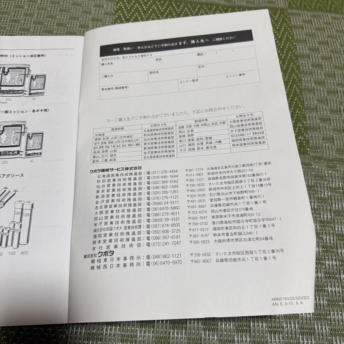クボタ コンバイン ARN 219.222.320.323 エアロスターウィット 取扱説明書