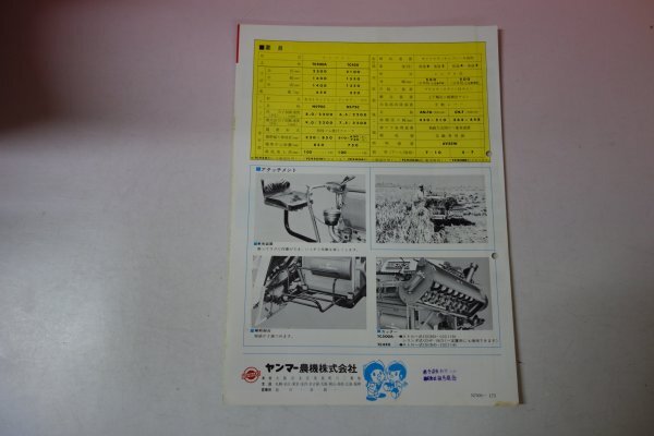 72907■カタログ ヤンマー ディーゼル コンバイン TC500A TC450 長門裕之 南田洋子