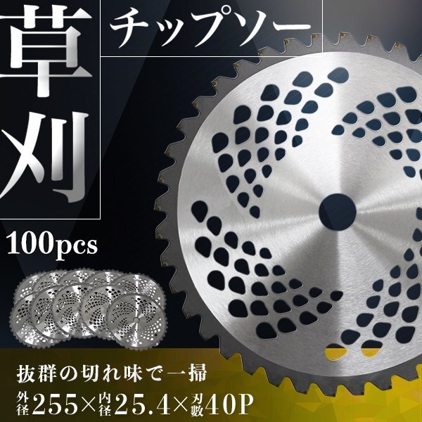 チップソー 替え刃 100枚セット 草刈機用 草刈 刃 草刈機 草刈り機 替え刃 草刈チップソー 替刃 刈払 255mm×40P 調整リング付 新品 未使用