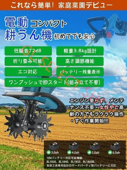 高品質電動耕運機 充電式 ミニ耕運機 小型 家庭用 充電式耕うん機 コードレス 小型 種まき機 マキタバッテリー併用 農機具 小型耕運機