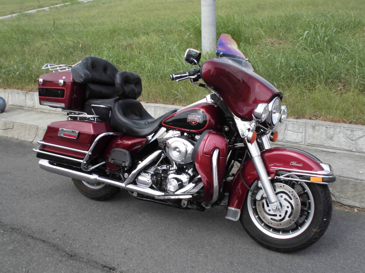 FLHTC1450 TC88キャブ 1HDフレ番のD車 車検8/9 商品詳細 平成13年登録 FLHTC エレクトラグライドクラシック1450キャブです。レッグシールド付きの見た目ウルトラ仕様。バックギア付き。車検令和8/9 メーター距離約47910キロ。書類距離47700キロ。走行距離管理システム通過済み。機関維持のため距離が増えるかもしれません。車台番号1HD1DJV171Y648*** 出品時にバッテリー充電、灯火類点検、メーター作動点検、タイヤ空気圧調整、エンジンオイル交換、前後ブレーキフルード交換、プラグ交...