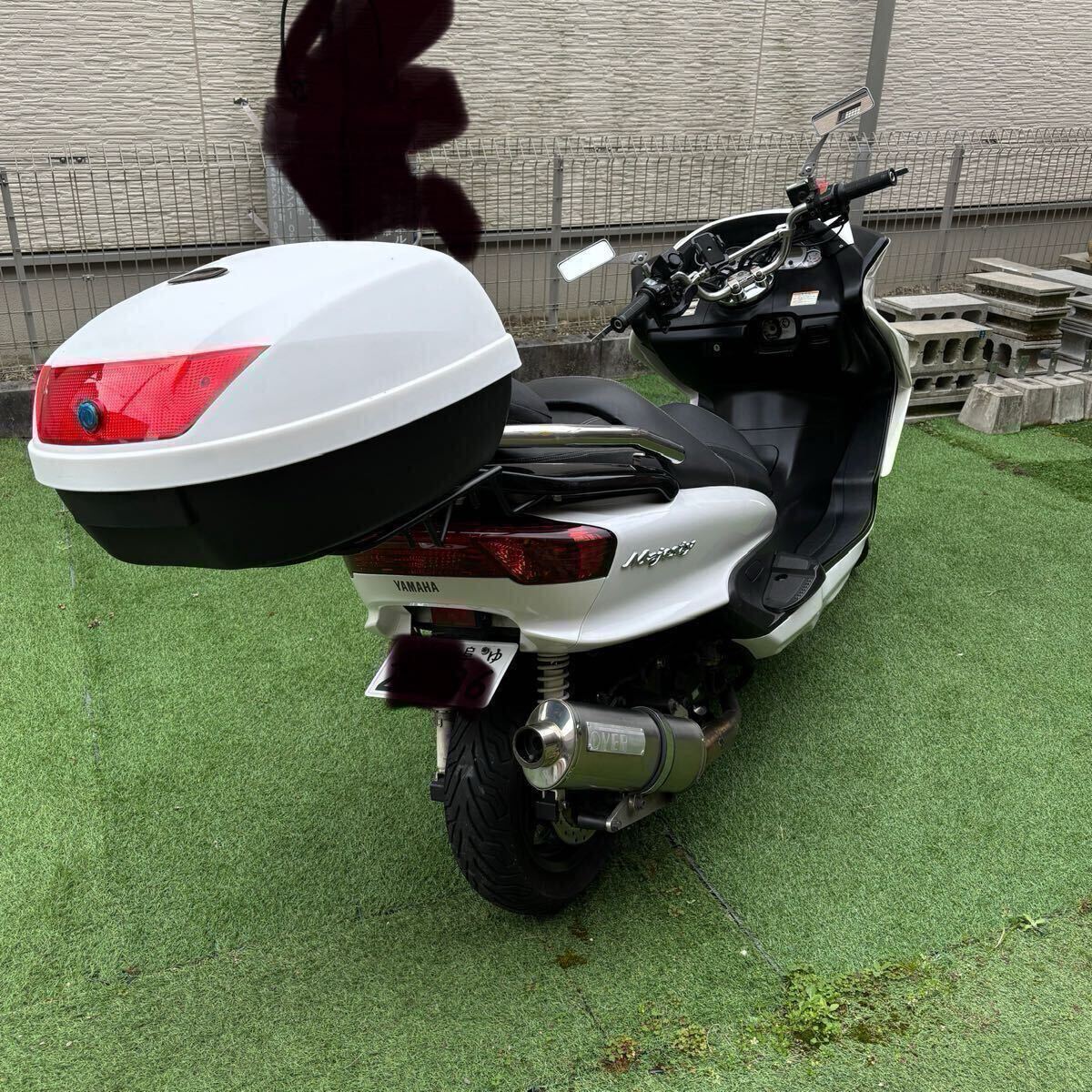 【商品の説明】 ブランド YAMAHA マジェスティ250 SG03J 型番:BA-SG03J056・・・メインキー2点カラー:パールホワイト(画像確認)マフラー: OVER(良いサウンド) 排気量:250CC(女性でも軽いので楽々走行です) 自賠責保険付き:令和10年5月22日まであり安心です。ナンバー付き乗って帰れます。(自己責任) 名義変更は必ず2週間以内に完了してください。完了画像はSNSにて確認致します。 現在距離:推定25000キロ程です。(23000キロで購入) 【商品の状態】 使用状況:現在も使用中です。(走行中メーター読みしなくなり...