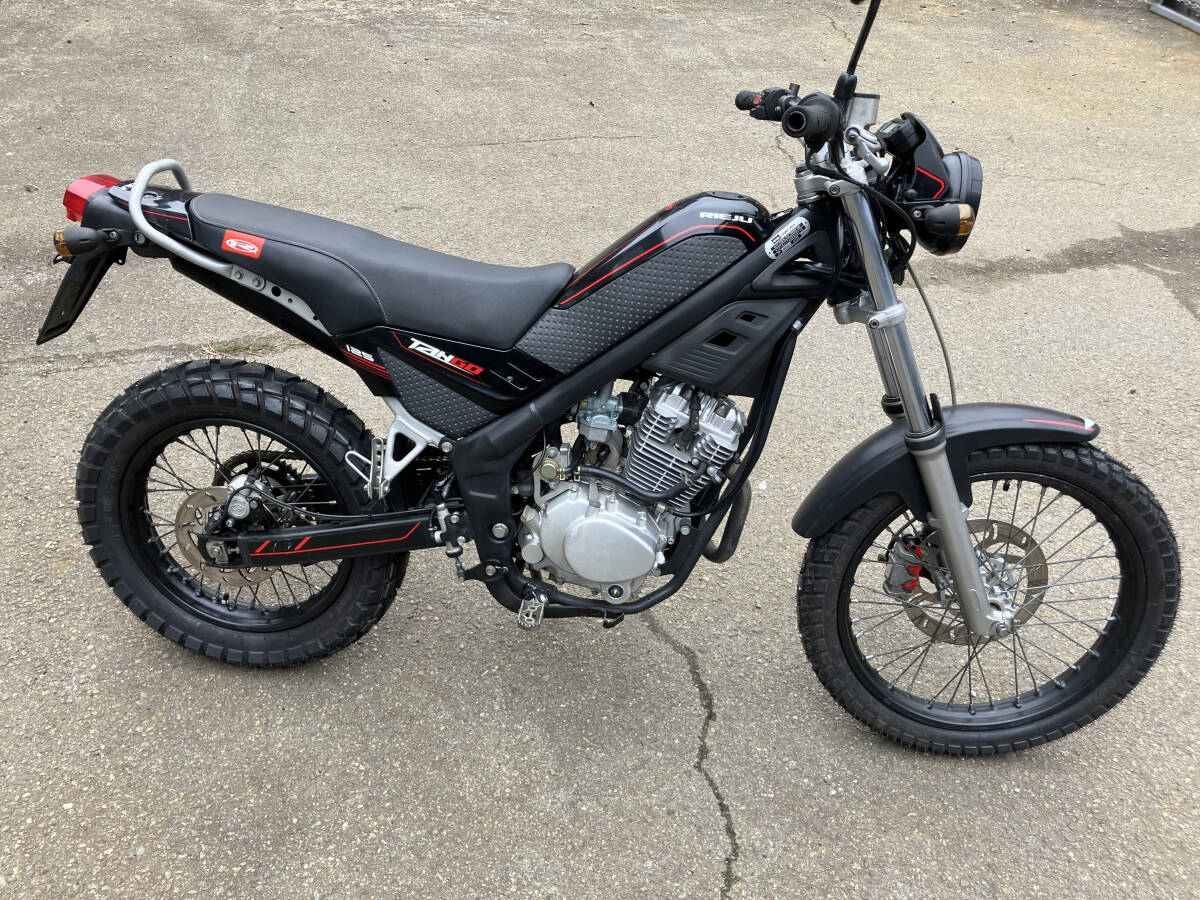 リエフタンゴ125中古車格安売り切り・メータ距離:5931km数年前、修理を楽しむ目的で購入した車両です。時間を作り、コツコツと修理を行いました。・タイヤ、チューブ前後:新品に交換済・キャブ:新品に交換済純正品有ります。・バッテリー交換・エンジンオイル:モチュル300V 10w-40に交換・エアフィルター:スポンジ部分を市販のエアフィルターに交換通常に走る、止まる、曲がるは可能です。キャブは新品を取り付けただけですので、調整することでより調子が向上すると思います。趣味で修理した車体ですので、個人で再度チェックを...