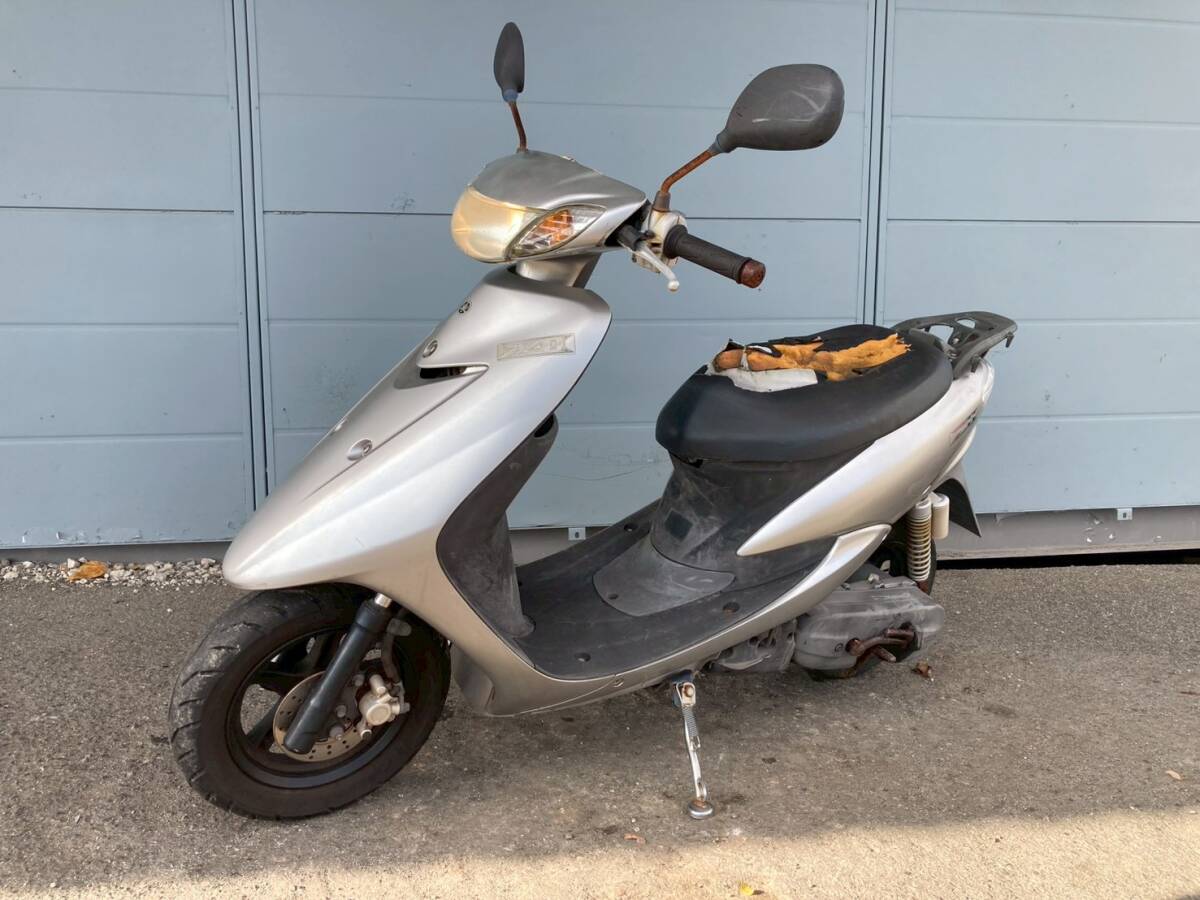 ・車体番号・・・5AU-0320※※ ・走行距離・・・50040㌔(メーター表示)・タイヤ フロント=1分山 リヤ=1分山 共にひびあり・エンジン不動、セルは回りキックも下ります・バッテリーは弱いです・マフラーとリヤショックを社外の新品と交換済みです・ミラーありません・左右のミラーのネジが折れ込んでいます・外装は傷、サビ、ひび、凹み、汚れ、破れ、変色、割れ等多数あります・販売証明をお渡しします・現状、ジャンク、3Nでお願いします・配送は落札者様の方でご手配願います