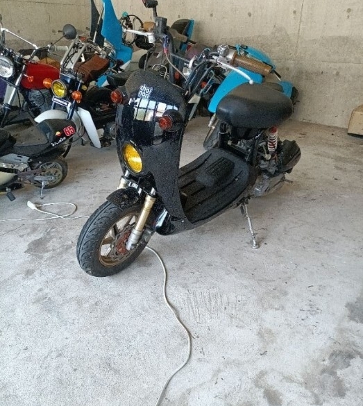 チョイノリ実動車です。キックにて始動します。アイドリング安定しています。吹け上がりも大丈夫だと思います。倉庫に長期間置いてあった物を譲ってもらいました。足に使うつもりでしたが他の車両も有り、保管場所の都合で出品します。各部点検しましたが特に問題ないかと思いますが、当方素人なのでバイク屋さんで点検してから乗って下さい。基本ですがノークレーム、ノーリターンでお願いします。関西圏はこちらの都合で良ければ無料にて軽トラで配達行きます。日時、曜日はこちらの都合になりますが自宅迄届けます。