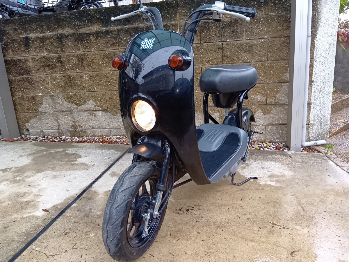 チョイノリ実動車です。キックにて始動します。アイドリング安定しています。吹け上がりも大丈夫だと思います。倉庫に長期間置いてあった物を譲ってもらいました。足に使うつもりでしたが他の車両も有り、保管場所の都合で出品します。各部点検しましたが特に問題ないかと思いますが、当方素人なのでバイク屋さんで点検してから乗って下さい。基本ですがノークレーム、ノーリターンでお願いします。