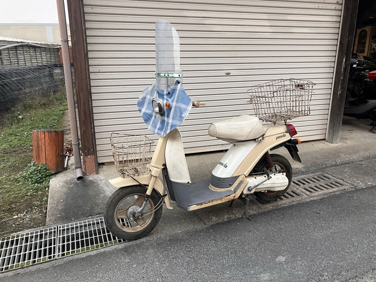 ヤマハパッソーラ2st書付レストアベースエンジン圧縮あります。タンク錆びてます。カウルは割れ無さそうです。風防にヤマハと書いてあります。よろしくお願いしますm(._.)m