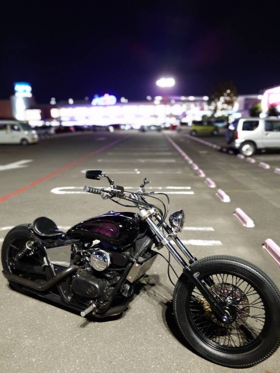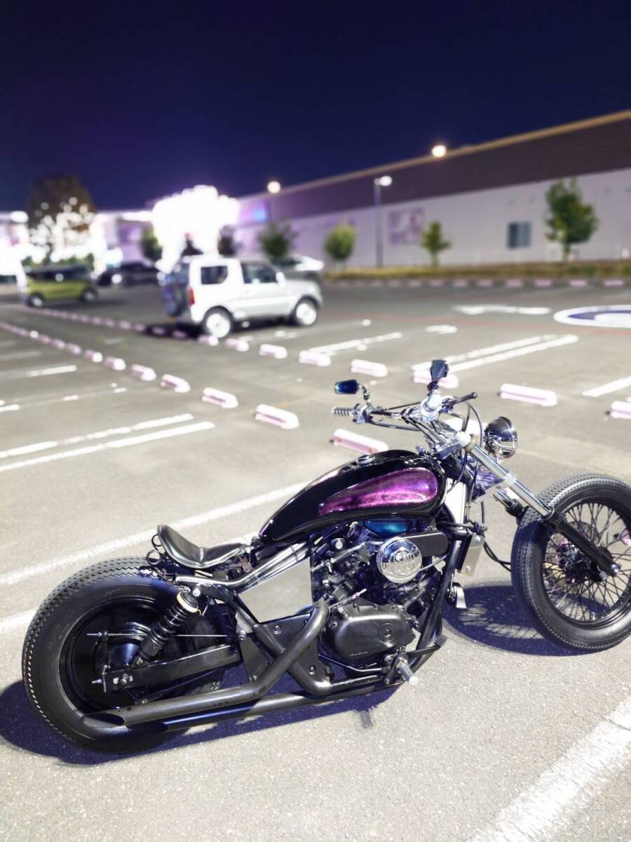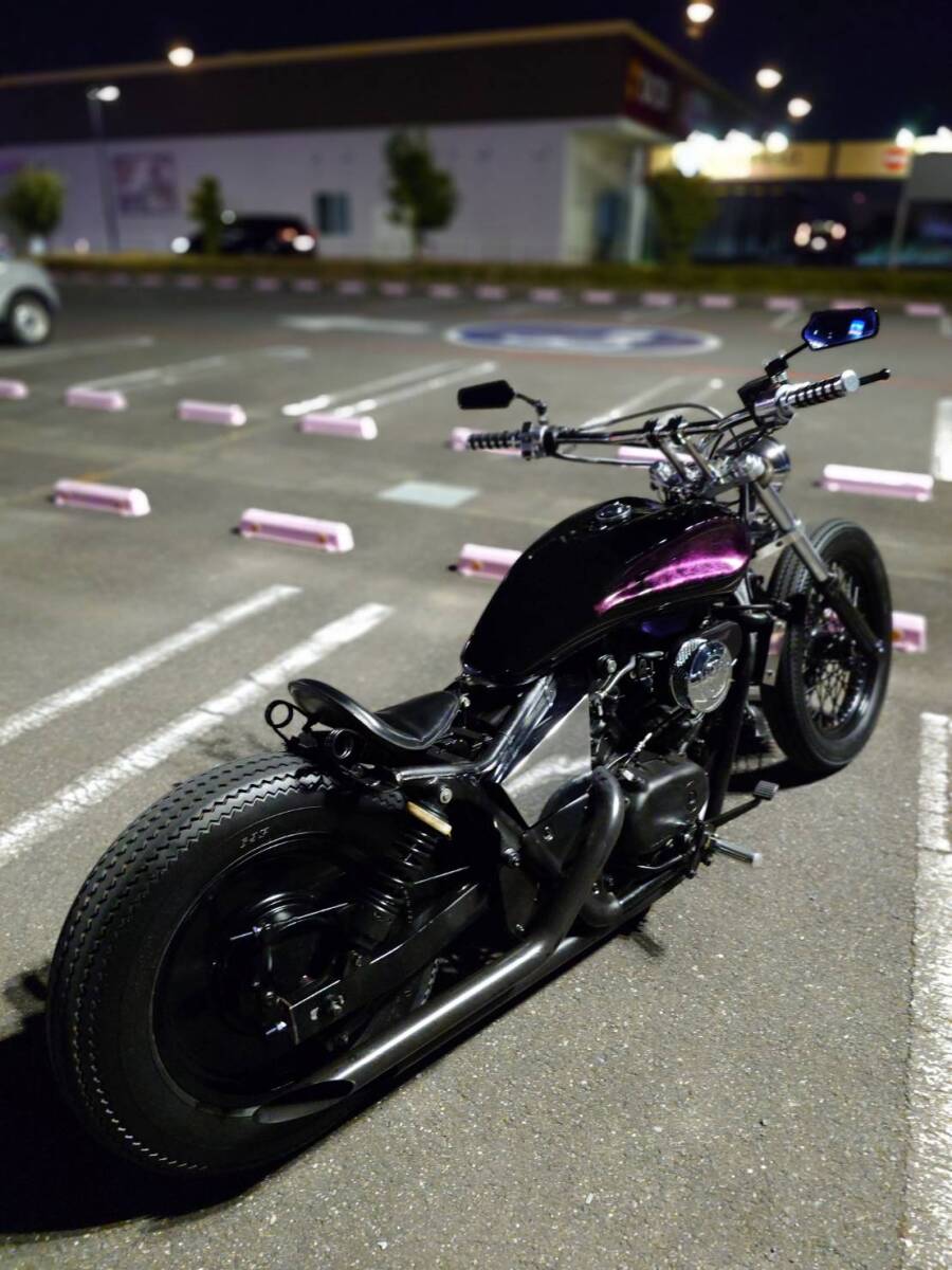 ホンダマグナを当時ネオクラシックにショップによって制作された一台、マグナのカスタムによくあるボルトオンパーツに付け合わせのガタガタなバランスになってしまっている車両とは全く異なり、ワンオフタンクを中心に、流れるようなロング&ローにストレッチを計算され作成されており、昼と夜や詳細高額パーツ(フロントブレンボや超レアリアドラムやトリブル削り出しフォーク周辺等)及び動画も多数アップしているのでご確認頂き、ノンクレームリターンの車両となります。当時物価高前に作成されており、この時期にここまでのカスタ...