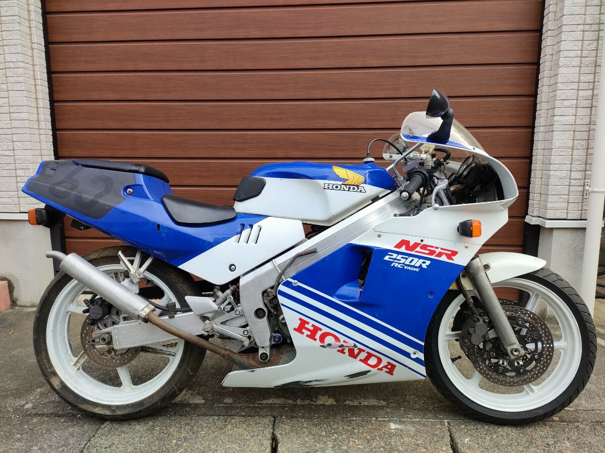 NSR250R MC18 88年式 長期不動車を整備しています。エンジンは快調で特に片肺も無くNSRの爆加速も健在です。RCバルブも作動しています。灯火類も問題ありません。液類は交換済、キャブのジェット類新品交換、リアブレーキパッド、フューエルホース、バッテリー、チェーン新品交換、リアシート張り替えしています。サブコンレス仕様とパワーフィルターになっています。メーターは固着していましたので別物を落札し交換していますので走行距離は25800ですが元のメーターは12600でしたが実際は不明です。ライトポジションはありません。ミ...