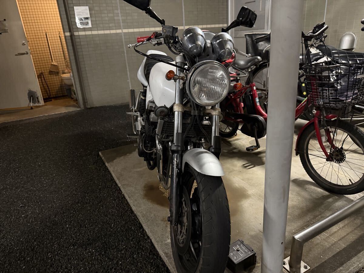 何度も出品すみませんイタズラ入札でキャンセルになったのでほんとに買いたい方のみ入札お願いいたします【商品内容】・購入したが整備する時間も車検通す時間もなく出品する事になりました・カスタムは所々されてます・所々サビはありますが目立つ程では無いので気になりません・セル1でかかります・吹き上がりも絶好調です・写真9と10はタンクが少し凹んでます・タイヤは山がほとんど無く落札後交換した方がいいです・エンジンなど綺麗です【車体情報】・走行距離44000・鍵1本・書類【整備】・オイル交換済み・バッテリー交換済み【...
